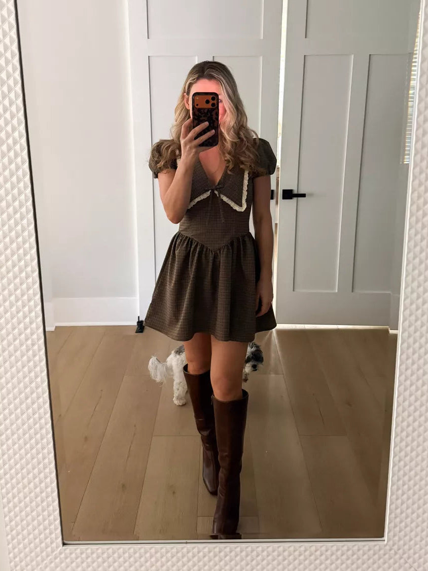 This is the kind of dress you just slip on and feel so pretty. No effort, just pure cozy fall vibes 🍂✨